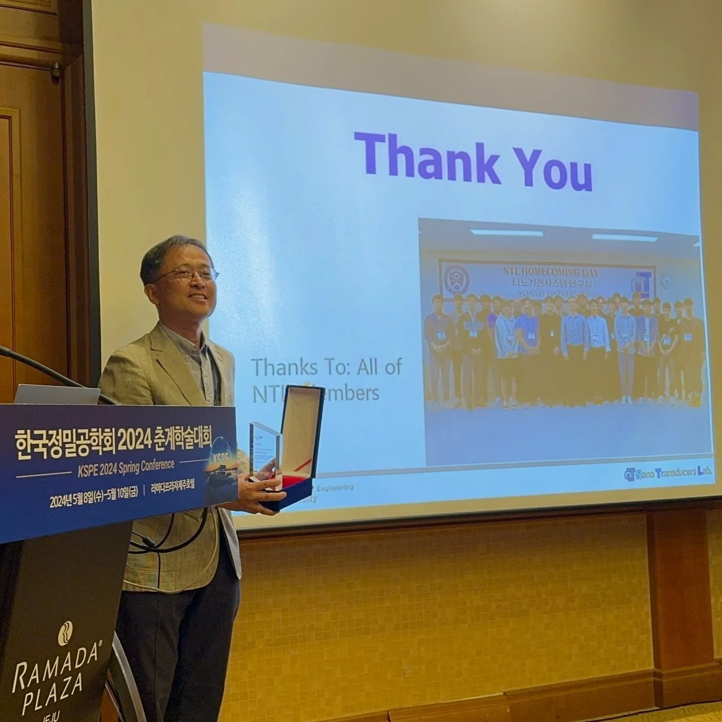 May 2024: Attended the KSPE conference held in Jeju from May 8th to 10th, 2024. We had an especially insightful experience attending the invited talk by Professor Jongbaeg Kim. Additionally, our lab member Hyeseon Jo achieved the remarkable accomplishment of winning the Best Paper Award at the conference!